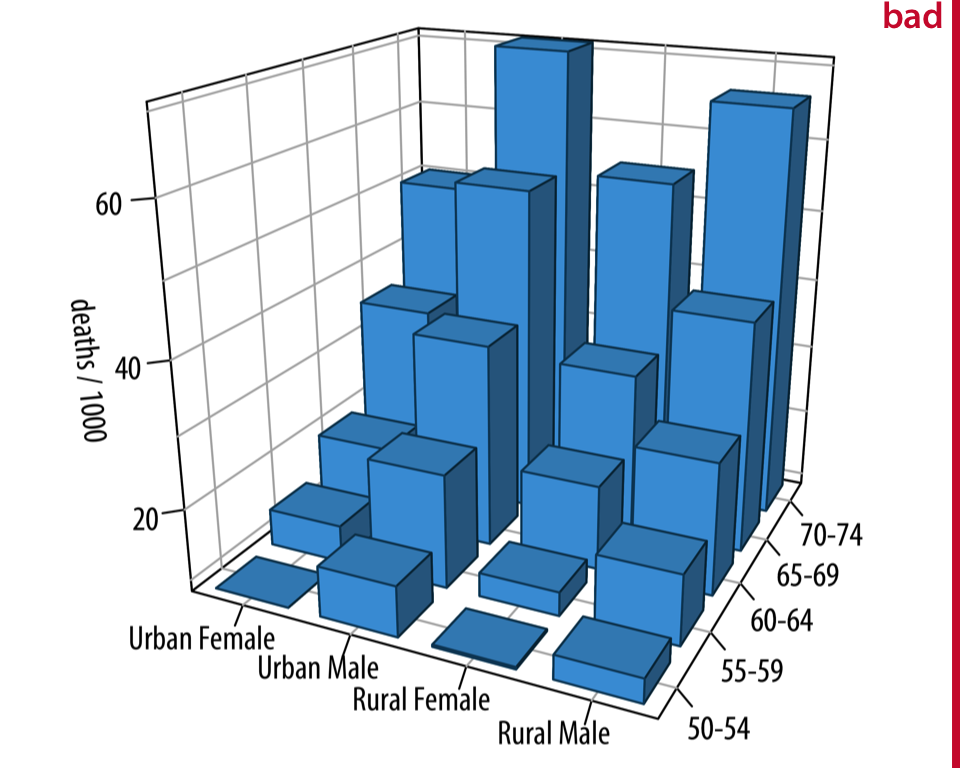 these plots are difficult to interpret because of the distorted effect of perspective associated with the third dimension.