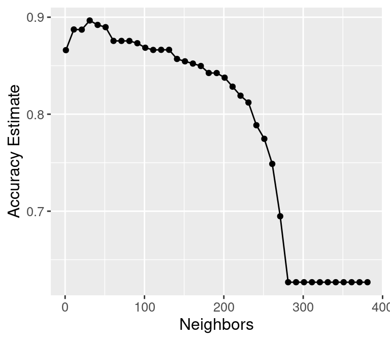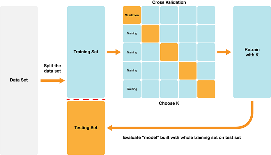 Choosing K is part of training. We want to choose K to maximize performance, but: - we can’t use test data to evaluate performance (cheating!) - we can’t use training data to evaluate performance (that’s what we trained with, so poor evaluation of true performance)