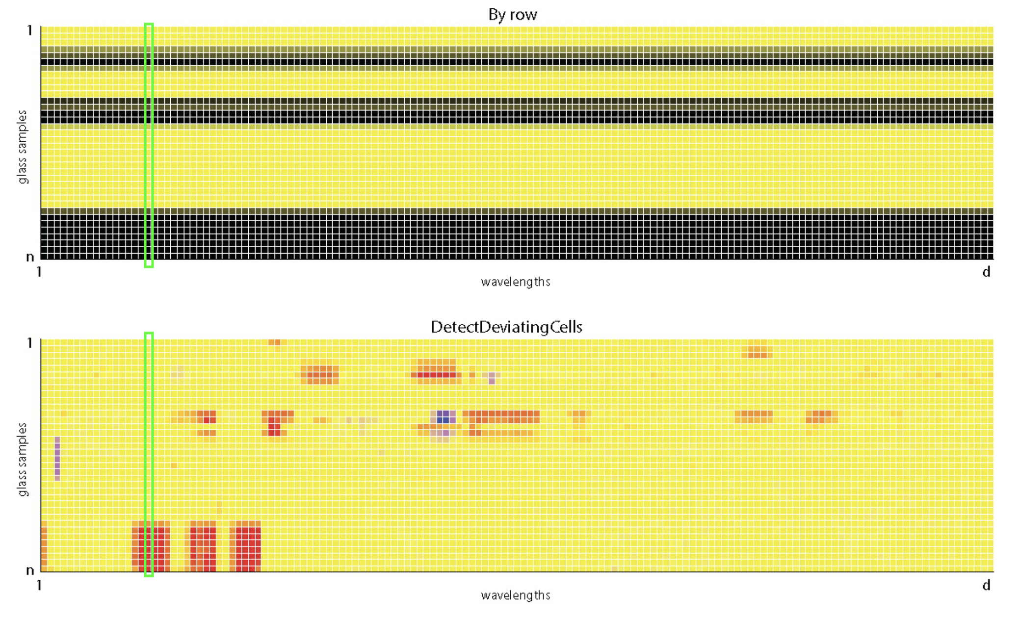 Data: n = 180 archeological glass spectra with d = 750 wavelengths (Detecting Deviating Data Cells, Rousseeuw & Van Den Bossche, Technometrics 2018)